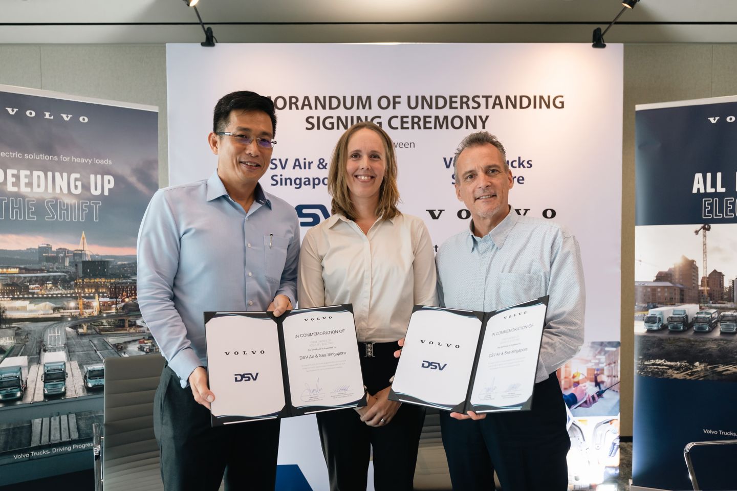 DSV Air & Sea 决定加快车辆零排放转型的重要因素是,这有助于推动其在新加坡市场实现运输和 物流服务脱碳,而且 DSV Air & Sea 在部分欧洲市场中使用了沃尔沃电动卡车完成最后一英里交 付,这个过程中 DSV Air & Sea 也获得了良好的体验。这份备忘录只是朝着更远大目标所迈出的第 一步。